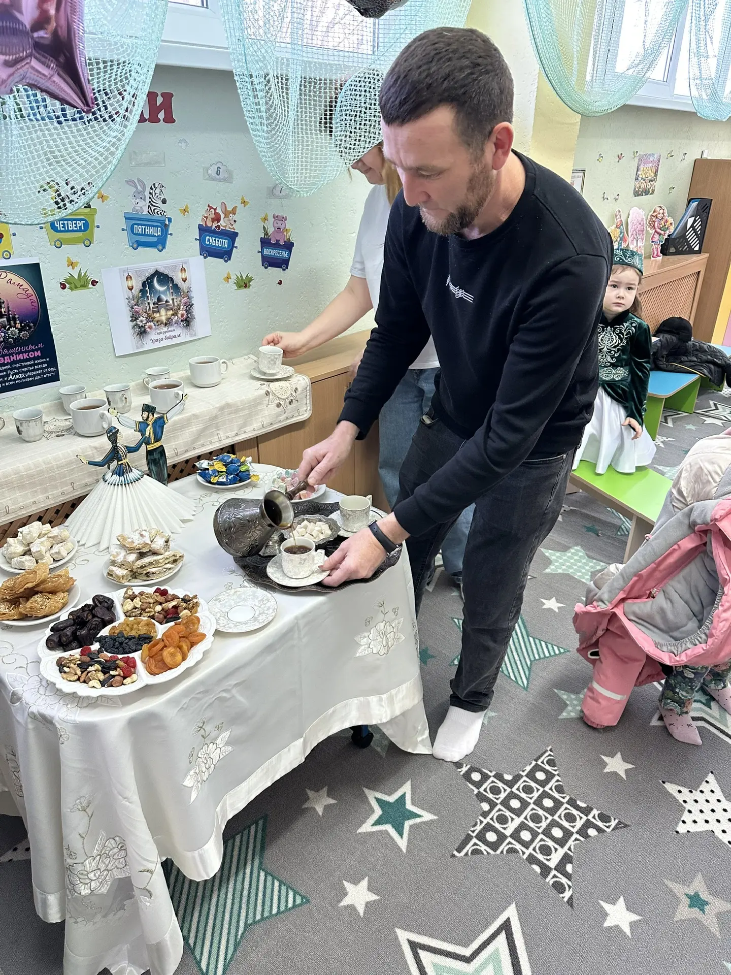 Главным украшением дня стало совместное чаепитие. Педагоги рассказали детям, что в Крыму традиции угощения чаем и ароматным кофе — это символ глубокого уважения к гостю. Ребята с удовольствием пробовали сладости, делились ими с родителями и узнавали о том, как важно делиться радостью с окружающими.